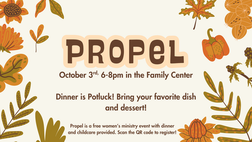 Propel Women meets to equip women in leadership, encourage women to pursue their God-given dreams, and empower women to have impact in their areas of influence. It is a great night out with dinner, music, guest speaker, video curriculum and conversation topics around the table! We meet in the Family Center.