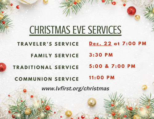 *Note that all of our services will be candlelight and will conclude with singing Silent Night.