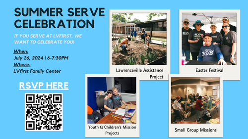 You've done the hard work, now it's time to CELEBRATE! If you've volunteered in any capacity at LVfirst or at any of our community projects/events, you're invited to join us at our Summer Serve Celebration. The work that you do is important, and we want to take this time to celebrate you!