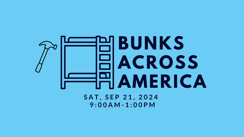 Our annual Sleep in Heavenly Peace Bed Build is coming up on Saturday, September 21st. We will be building beds from 9:00AM to 1:00PM in the parking lot in front of The Warehouse. Lunch will be provided for all volunteers!