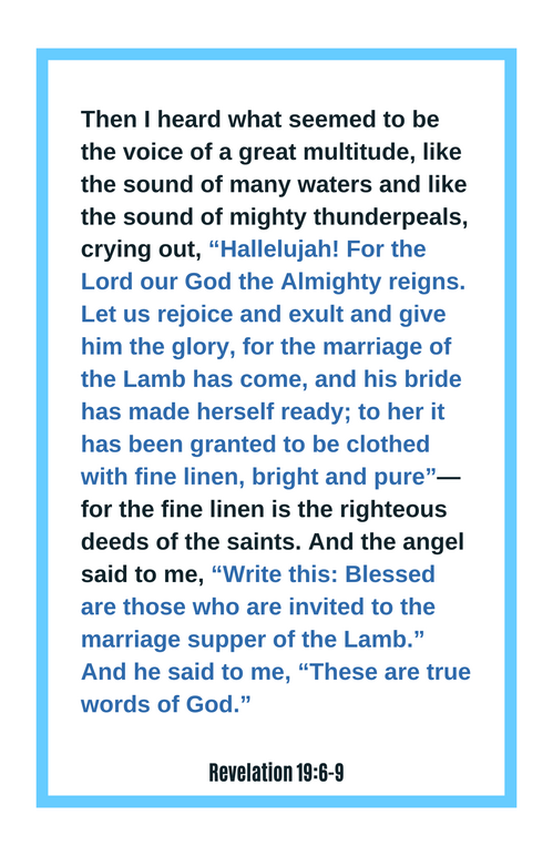 This week's scripture was Revelation 19:6-9