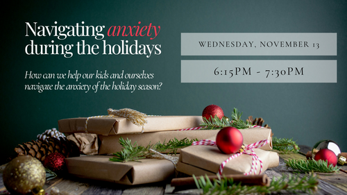We all have fears and worries, but how do we help our kids navigate those and when do we seek additional help? What role are we playing as parents to help or hurt our kids and how they are feeling? How do we help them cling to God in their worries and find peace? What do we do with our own anxious thoughts and how are they shaping our kids? Join us as we learn together in navigating the anxiety of the holidays and beyond.