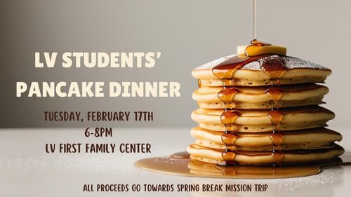 Join us for our annual LV Students Pancake Dinner. All proceeds will go towards our students' upcoming Spring Break Mission Trip.