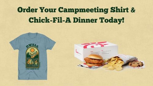 On Thursday evening at Campmeeting, we will be providing Chick-Fil-A Box Dinners. You can place your order using the same button below to order your shirt!
