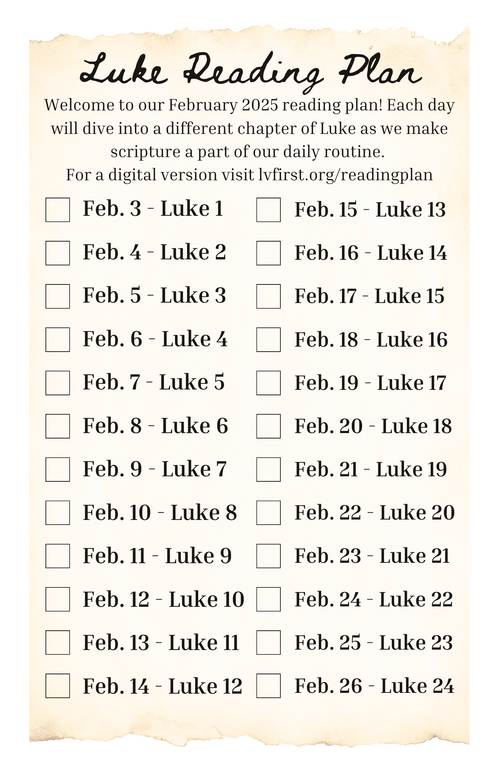 In the month of February, we will be diving into the Gospel of Luke and reading through from start to finish.