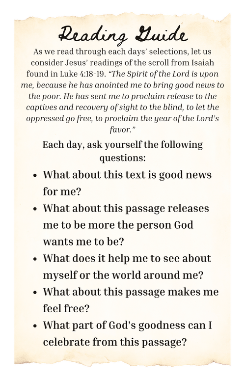We have put together a reading plan that will help you engage in this series throughout the week and give you context to better relate to each Sunday's sermon.